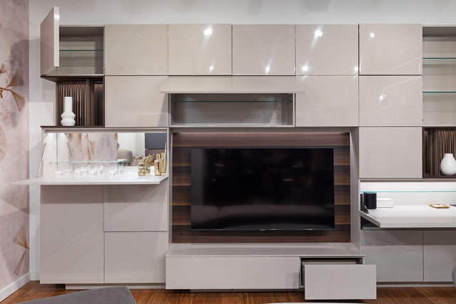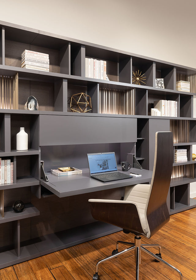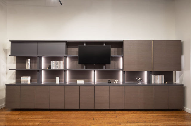 - Storage systems: The showroom portrays customizable, built-in storage solutions with shelving and cabinetry. These products serve various purposes, whether you want to save space or create an eye-catching look in any room.